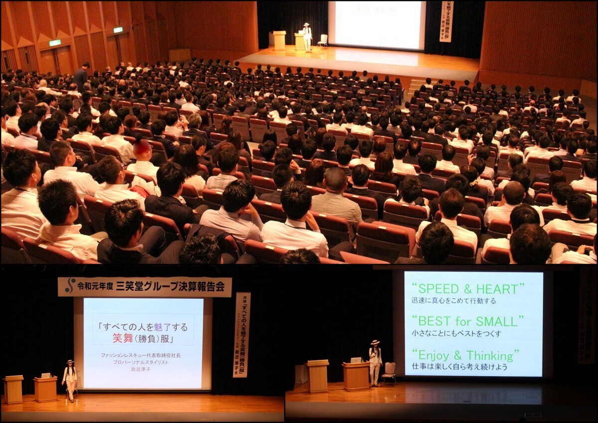 その土地の名士・企業社長・会長の皆様がお集まりになる会にて全国各地を回っています。総理大臣も登壇なさる会にて、ファッションを担当しています。